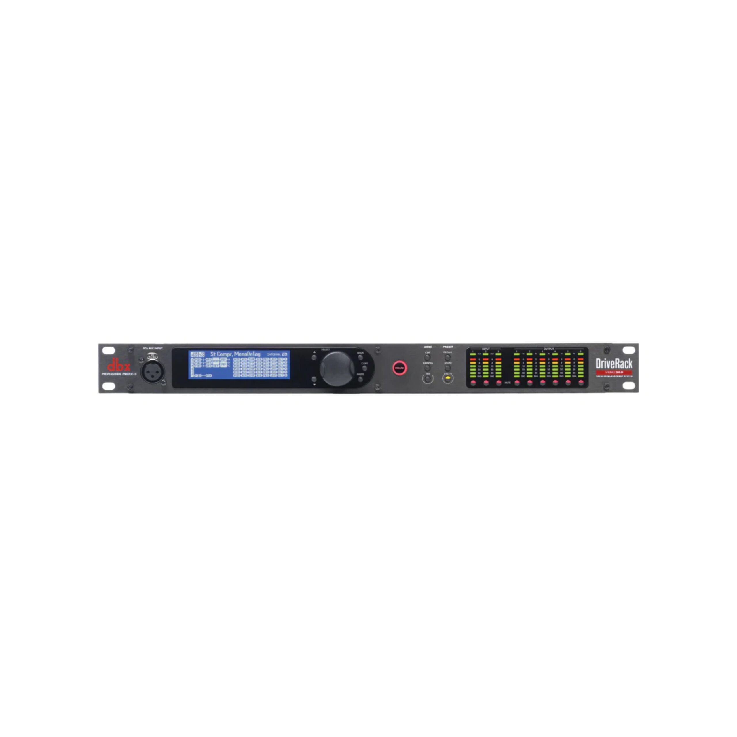 El VENU360 ofrece todo el procesamiento y la flexibilidad que necesita entre su mezclador y sus amplificadores para optimizar y proteger sus altavoces. Con los últimos avances en los algoritmos patentados AutoEQ™ y AFS™ de dbx, canales de entrada adicionales, control Ethernet a través de un dispositivo Android®, iOS®, Mac® o Windows® y asistentes actualizados, el DriveRack VENU360 continúa el legado de DriveRack de procesadores de gestión de altavoces de gran sonido, potentes y asequibles, para una nueva generación completa.